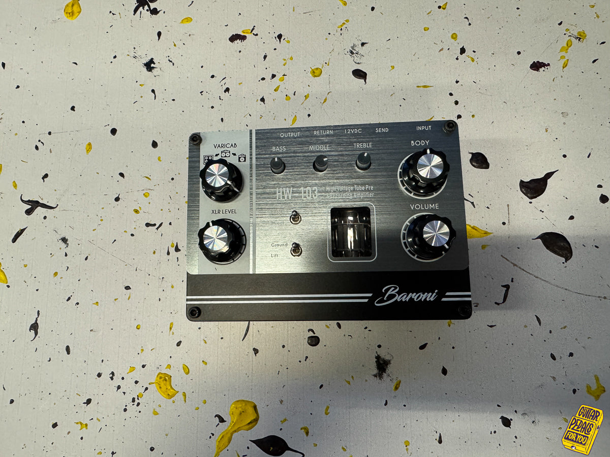The Baroni Preamp/ D.I.Recording Tube Amp is a series of five devices, powered by an high voltage tube preamp, to perfectly mimic the whole behavior of their reference classic amplifier, in order to offer the best possible interface for recording or live performances, connected to an audio interface, a desk console or a PA.