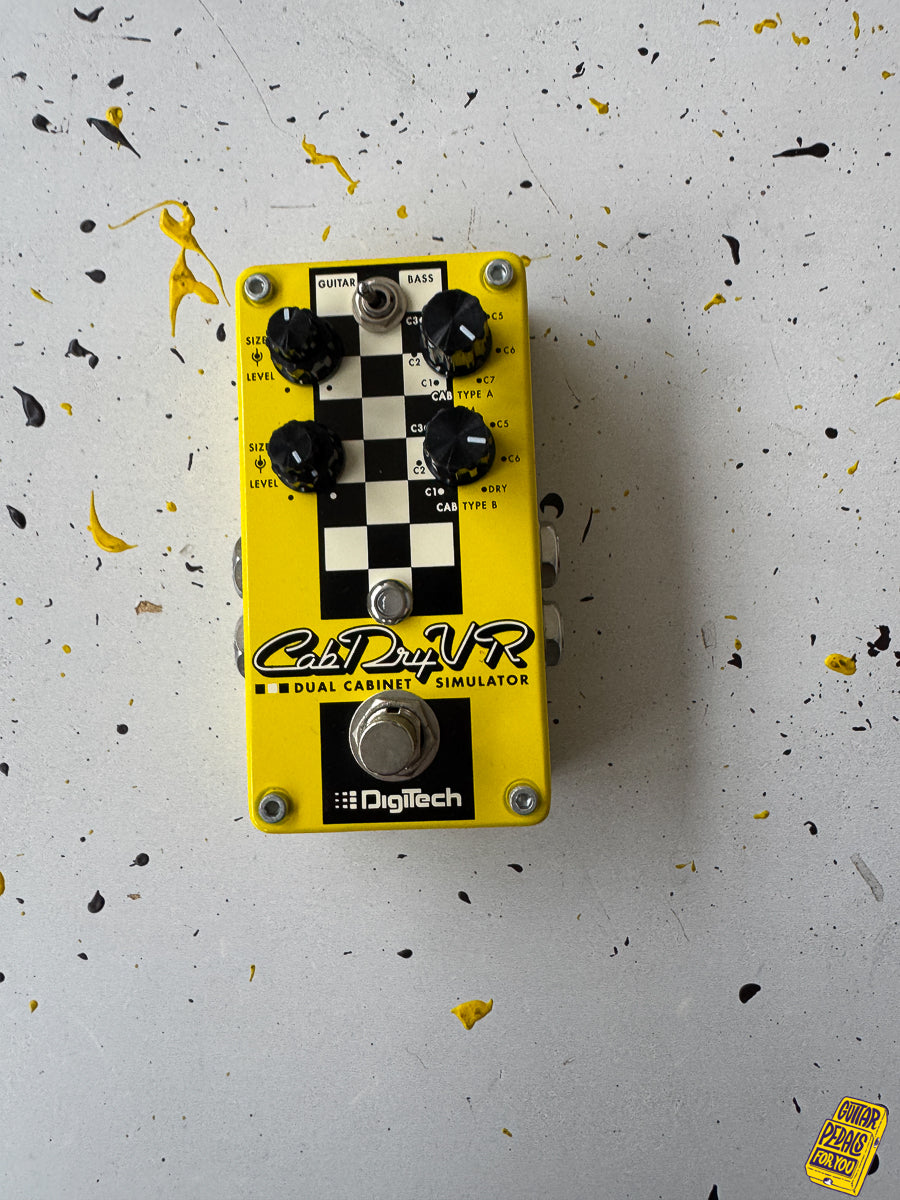 Built with 14 studio-grade guitar and bass cabinet simulations, dual inputs/outputs for mixing cab flavors to your taste, and a no-nonsense four-knob interface, the DigiTech CabDryVR Dual Cabinet Simulator condenses a wall of tone into a single pedal. Select from seven guitar and seven bass cabinets with a turn of a knob, straddling the spectrum from creamy British to American tweed. Top it off with the option to record directly to an interface or play live using the analog output on the B channel.