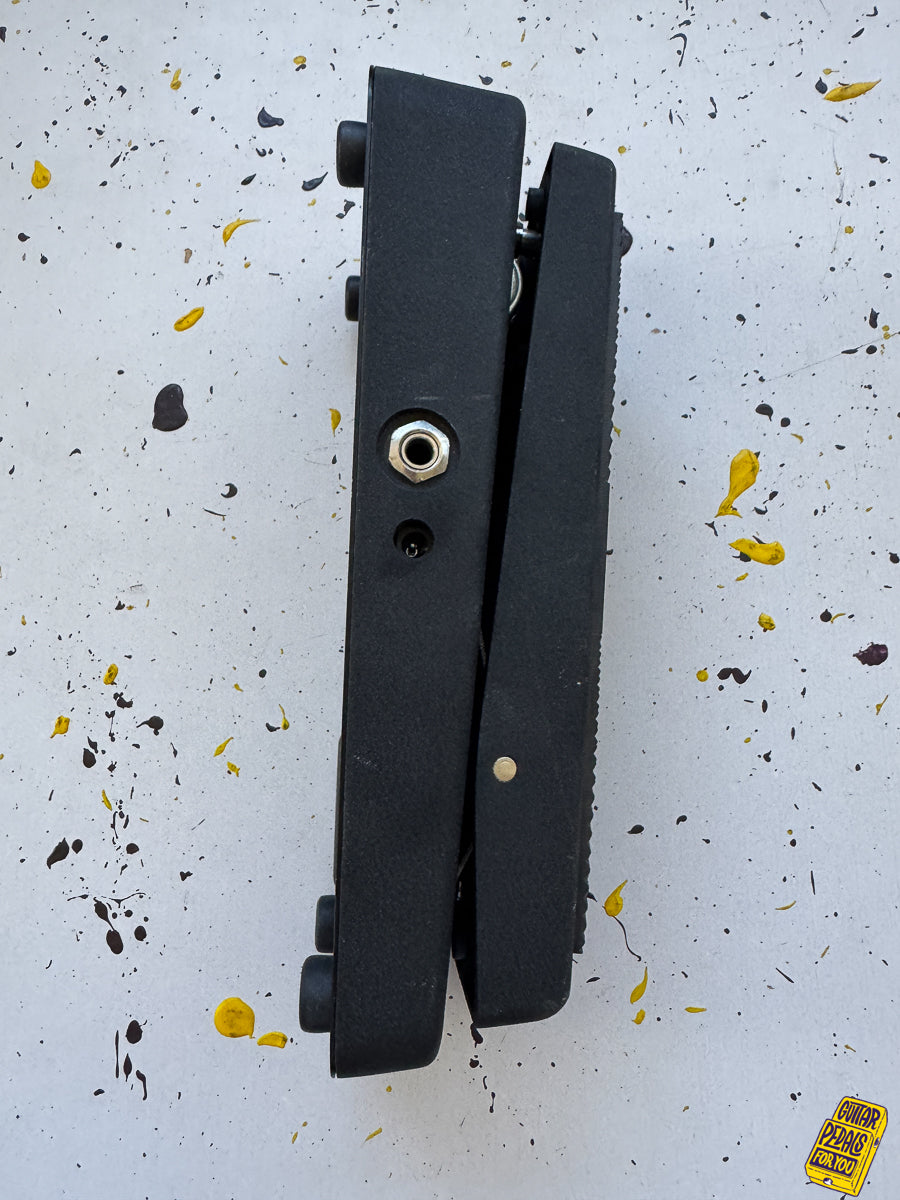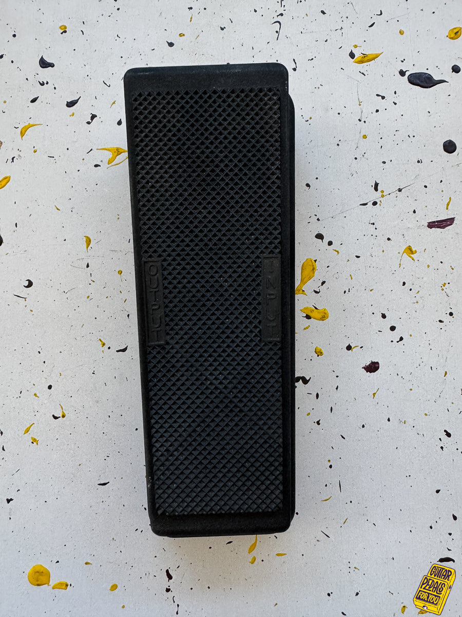 Een klassieke wah-wah pedaal: voetbediende filter/“wah”-modieleffect voor gitaar (eventueel ook bruikbaar met bas or andere instrumenten), waarmee je het frequentiebereik dynamisch kunt verschuiven om expressieve “wah” geluiden te maken.